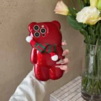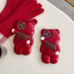 Cute 3D Teddy Silicon Case for iPhone 14 Pro With Scarf